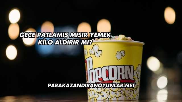 Gece patlamış mısır tüketmek doğrudan kilo artışına yol açmasa da porsiyon kontrolü yapılmadığında ve özellikle fazla yağ ve tuz eklendiğinde kalori miktarı yükselir, bu da günlük alınan enerji miktarını artırarak kilo artışına zemin hazırlar. Kullanıcılar, patlamış mısırı hafif ve yağsız hazırlayıp porsiyonu abartmadığında gece de tüketebilir ancak her gün ve büyük miktarda tüketmek zamanla kilo sorunlarına yol açabilir.